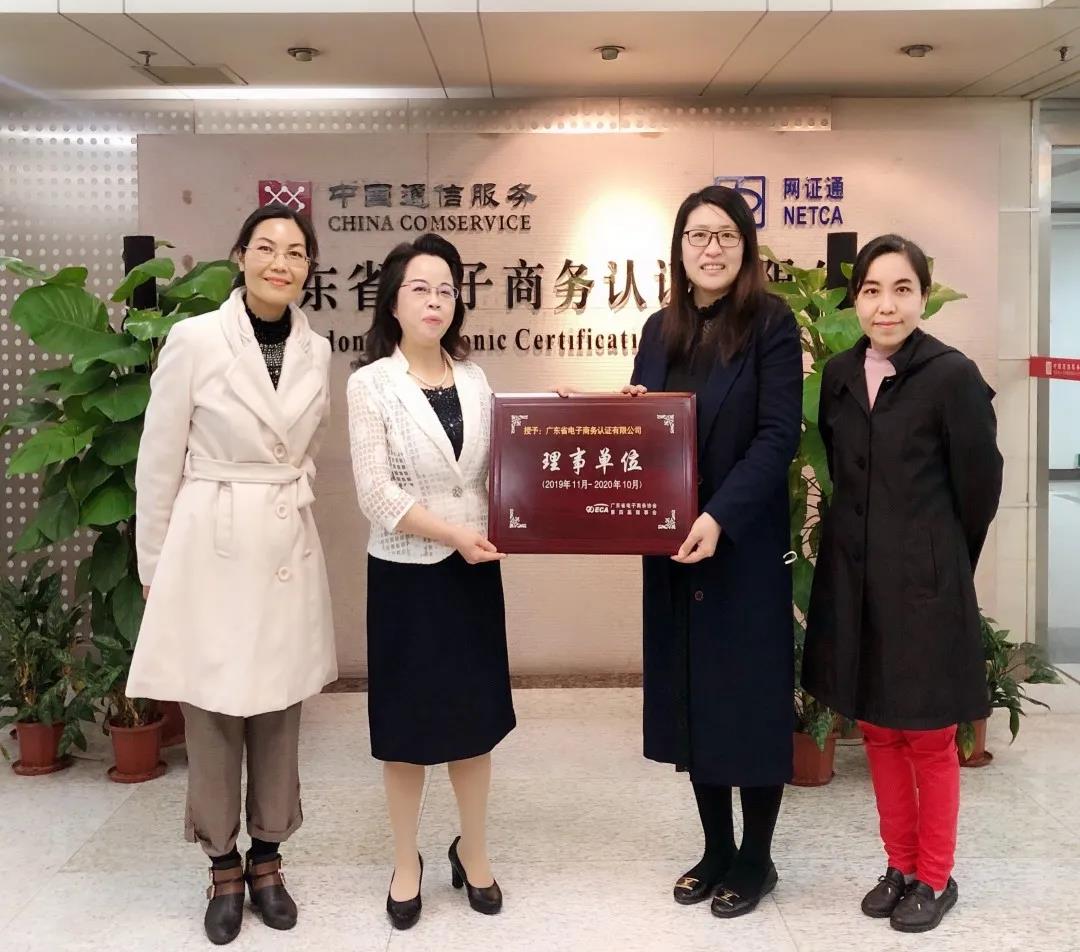 2020年48日,廣東省電子商務協會王丹常務副秘書長一行來訪廣東省電子商務認證有限公司(簡稱網證通),胡靜副總經理給予了熱情接待。自廣東省電子商務協會成立以來,網證通擔任協會理事單位已達十余年(曾任首屆會長單位),積極參加和支持協會工作。王丹副秘書長對網證通給予協會多年來工作上的支持表示衷心感謝,對網證通在電子商務、電子政務領域的誠信經營、踐行社會責任方面發揮積極帶頭作用表示充分肯定和高度贊揚。