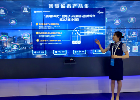 中國通服的綜合講解員進行“電子認證”的產品講解